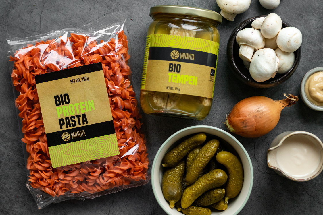 Решихме да експериментираме и с днешната рецепта. Този път опитахме да променим телешко Строганов, така че да получим ястие, подходящо за вегетарианци. Трябва да признаем, че усилията ни се увенчаха с успех. Заместихме месото с темпе и използвахме растителна алтернатива на класическата сметана. Така получихме вкусно и хранително ястие, което можете да консумирате на обяд или вечеря. Можете ли да си представите фитнес рецепта без добавено количество протеини? Подобно на нас и вие можете да увеличите съдържанието на протеини с помощта на протеинова паста, която ние използвахме, като гарнитура. Нека да приготвим тази бърза рецепта. Със сигурност няма да ви разочарова.