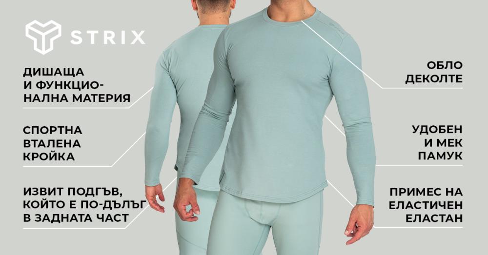 Блуза с дълъг ръкав Nebula е висок клас горна дреха, изработена от фина и удобна памучна материя, която веднага ще харесате. Тя е с минималистичен дизайн с извита долна част, която е по-дълга отзад. Благодарение на примеса на еластан, тя ще пасне идеално на тялото ви, подчертавайки мускулестото ви телосложение и ще издигне стила ви на ново ниво. Тя е идеална за носене през свободното време и се съчетава добре с почти всичко в гардероба ви.