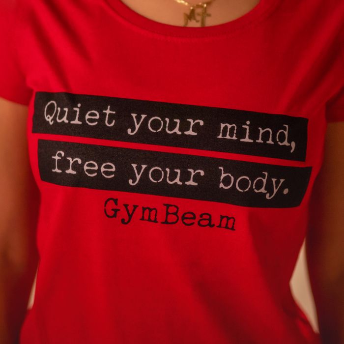 Дамската тениска Quiet Red ще ви напомня със своя надпис да успокоите ума и да освободите тялото си. Тениската е изработена от висококачествен 100 % памук и благодарение на отличителния ѝ цвят, в нея ще изглеждате неотразимо. Можете да носите тази универсална модна дреха както по време на тренировки, така и в ежедневието.
