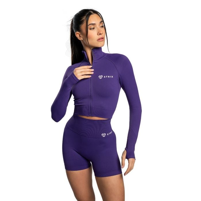 За да осигури перфектно прилягане, топът включва технология за разтягане в 4 посоки. Това означава, че той няма да ограничава движенията ви по време на спорт. Тази по-къса кройка с оребрен долен ръб перфектно оформя женските извивки. Тя е с изрязана дължина, което я прави да изглежда страхотно и лесна за съчетаване с клинове или къси панталони с висока талия. Освен това е с по-висока яка и закопчаване с цип, което прави топа универсален както за по-студено, така и за по-топло време. Този дамски спортен фитнес топ е идеален за фитнес залата, бягане, йога, пешеходен туризъм и други дейности. Ще оцените и минималистичния дизайн, който го прави лесен за комбиниране. Безшевното облекло предлага изчистени линии и атрактивен външен вид, което гарантира, че ще изглеждате стилно дори по време на тренировка.