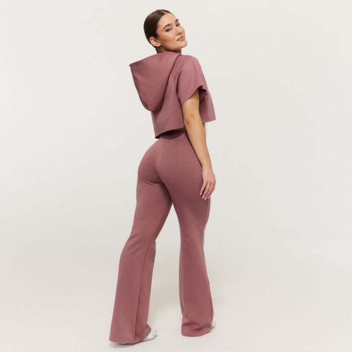 Този модел веднага привлича вниманието с модерната си кройка в стил "flare", която леко се разширява от коленете надолу. Този дизайн подчертава фигурата и изглежда много женствен. Тъй като нямат джобове, те създават изчистен и елегантен външен вид. Освен това, тези джогъри със средновисока талия са снабдени с практичен ластик и връзка, което ви позволява да ги регулирате според вашите нужди.