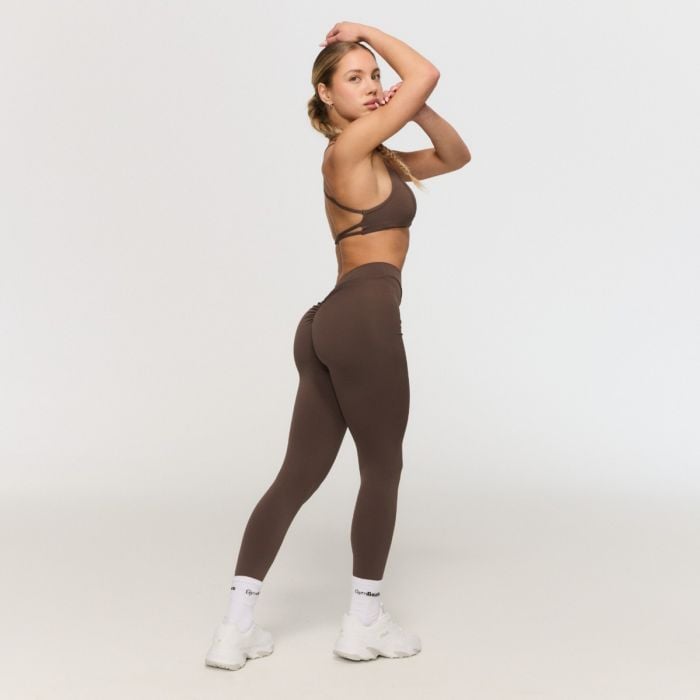 Ще се влюбите в този стилен клин за фитнес заради детайлите, които подчертават женската фигура до максимум. Специфичният дизайн без преден шев ефективно предотвратява неприятното впиване, докато оформящият ефект „scrunch butt“ идеално закръгля и подчертава дупето ви. Оригиналният V-образен дизайн отзад също допринася за оптично отслабване и оформяне на талията. Чистият и гладък вид се подсилва от липсата на джобове, което го прави изключително елегантно облекло за силова тренировка, йога или бягане. Ще го харесате обаче и като основа за ежедневни спортно-елегантни тоалети за града. Облечете го и покажете, че сте готови да преодолеете границите си.