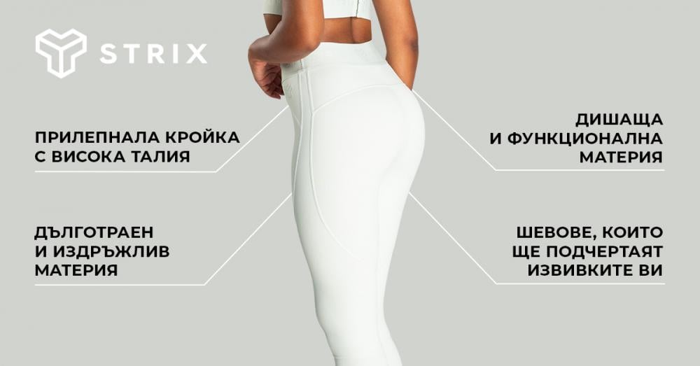 Ако харесвате модата, без съмнение ще оцените техния стилен едноцветен дизайн, украсен с лога на марката STRIX, поставени на талията. Този вечен модел със сигурност ще е модерен винаги и лесно ще се комбинира с други дрехи. Ако искате да завършите своя комплект, не пропускайте нашия регулируем сутиен или подходящо горнище от същата линия.