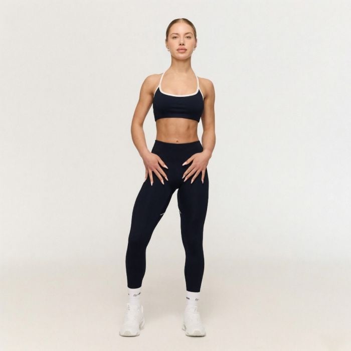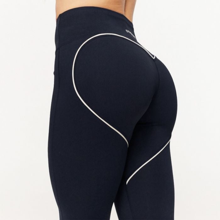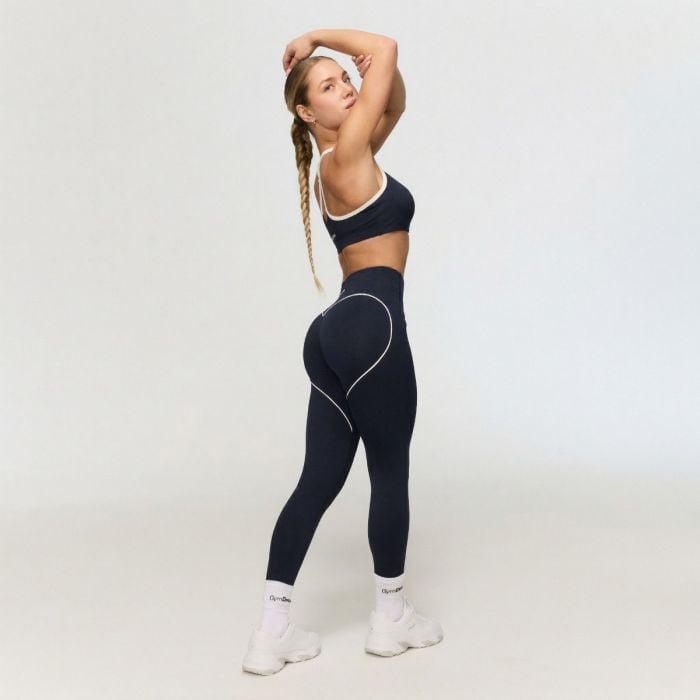 Този спортен елемент се отличава с дълга кройка, която перфектно се адаптира към вашата фигура. Високата талия гарантира, че клинът остава сигурно на място и няма да се плъзга дори при дълбоки клекове. Безшевният дизайн отпред без джобове осигурява максимален комфорт без никакво неудобно притискане или триене. Изпъкващата характеристика е големият и контрастен сърцевиден подгъв отзад, оформен от тънки бели ивици. Този детайл оптически оформя задната част и перфектно подчертава вашите естествени извивки.