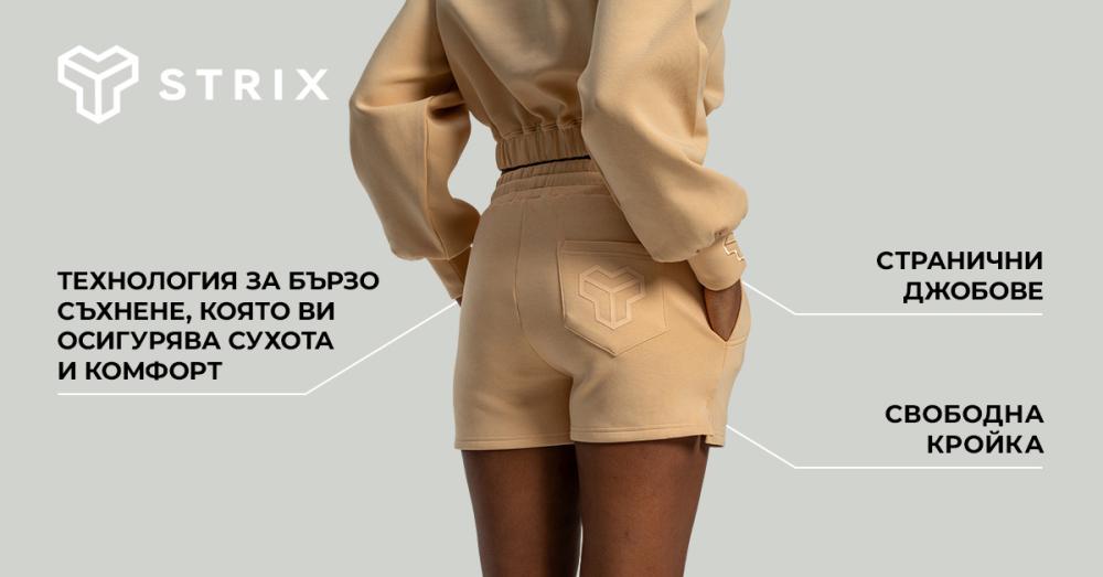 Шортите разполагат и с еластичен колан на талията, който може да се стяга и регулира с връзка. За да бъдат не само удобни, но и практични, те имат два джоба отстрани и един в задната част. Това се допълва и от оригиналното лого на Strix, за да покажете на всички своята мотивация и страст към движението и спорта.