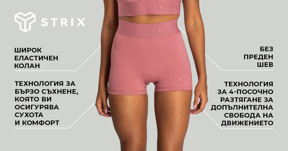 Ако харесвате модата, без съмнение ще оцените стилния дизайн на късите панталони. Предлагат се в един цвят, но са всичко друго, но не и скучни. Изисканият дизайн, украсен с логото на STRIX на бедрото и на талията, превръща тези шорти във вечно парче, което никога няма да излезе от мода. Нещо повече, те са лесни за комбиниране с други дрехи . Ако искате да завършите своя комплект, не пропускайте нашия регулируем сутиен или подходящ спортен топ от същата линия.