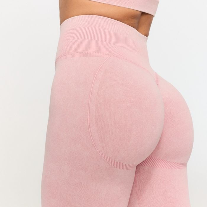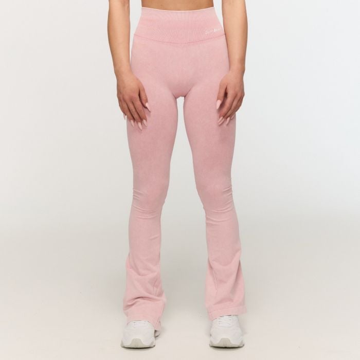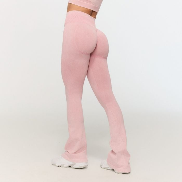 Това функционлно долнище с избелен ефект има push-up и scrunch butt дизайн, които идеално оформят дупето. В съчетание с плътно прилепващата кройка и оребрена висока талия, то красиво очертава фигурата и подчертава извивките ви. От коленете надолу долнището с push-up ефект постепенно се разширява в популярната разкроена кройка. Въпреки това то запазва минималистичен вид и лесно се комбинира с други спортни дрехи. Облечете това модерно долнище и се насладете на чувство на увереност и комфорт по време на всяка тренировка.
