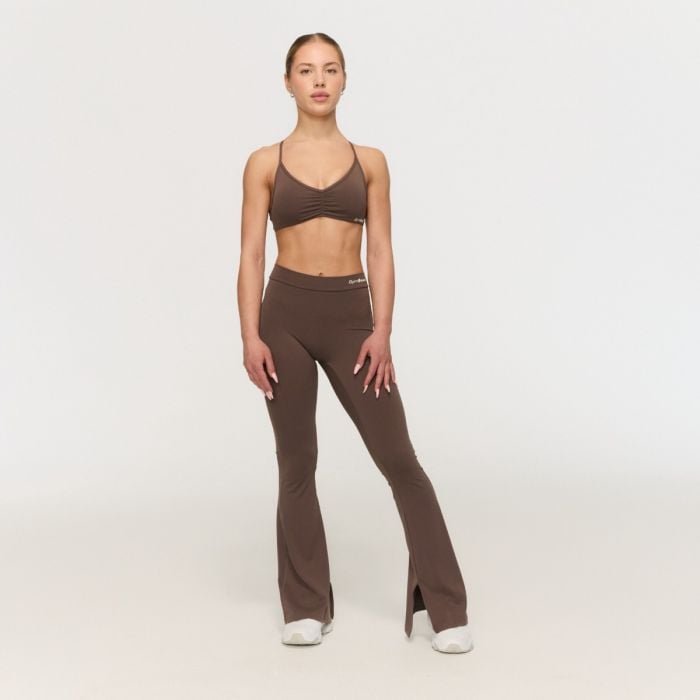 Основното предимство на това долнище е неговият дизайн, подчертаващ задната част, кройката без преден шев и високата талия с уникални V-образен дизайн на гърба. Заедно с прилепващата кройка в областта на бедрата, която постепенно се разширява в модерен разкроен дизайн, долнището ще подчертае всяка женствена извивка. За да се отличи още повече, сме добавили разрези в долната вътрешна част на крачолите. В същото време запазва минималистичен вид, така че можете лесно да го комбинирате с любимия си спортен топ, сутиен или суичър. Покажете силата и тонизираната си фигура в спортно долнище, което ще ви даде увереност при всяко повторение.