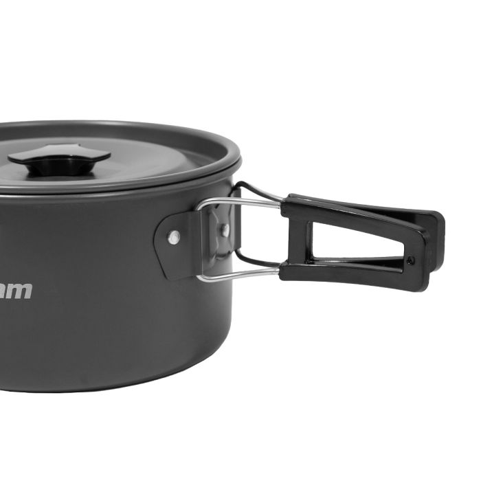 Комплектът съдове за готвене на открито е комплект за готвене на открито, без който не трябва да оставате по време на поход или къмпинг. Той включва издръжливи съдове за готвене под формата на тиган, чайник с капак и тенджера с капак. Всички части на комплекта са изработени от лек и издръжлив алуминий, който е идеален за употреба на открито. Нагрява се бързо, като спестява време и гориво, и същевременно е достатъчно здрав, за да издържи на нормални удари, когато се носи в раница или се закача с карабинер. Това прави този комплект чудесен спътник за всяка експедиция на открито. През целия ден можете да приготвяте хранителни ястия и напитки, които ще ви заситят, ще ви осигурят комфорт, ще ви стоплят и ще ви помогнат да доведете моментите на открито до съвършенство.