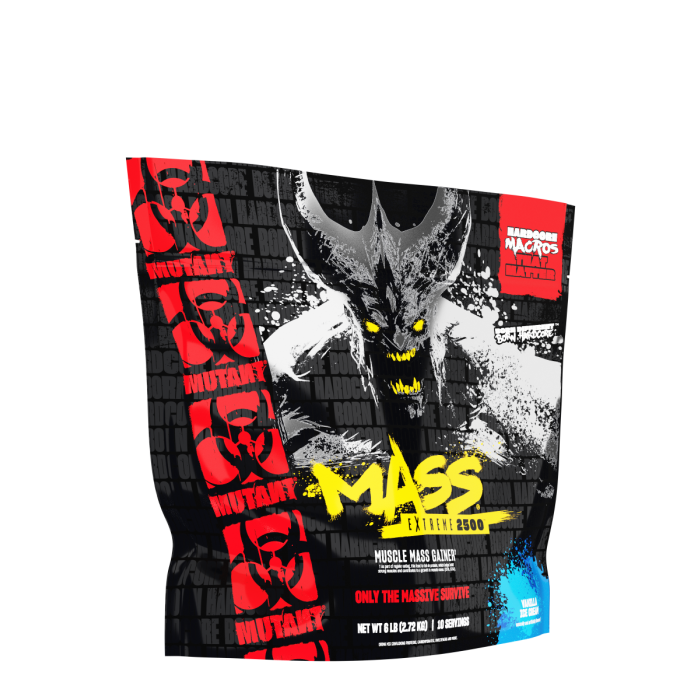 Mutant Mass Extreme е зареден гейнър, който ще помогне ефективно да се увеличи приема на енергия, например във фазата на покачване, когато може да е предизвикателство да се консумират достатъчно калории. Основата на сместа е добра доза качествени въглехидрати и други макронутриенти от пълноценни храни, сред които ечемик, сладки картофи, овесени ядки и тиквени семки. Освен това гейнерът съдържа и комбинация от протеини под формата на пшеничен протеинов концентрат, изолат и хидролизат, и е с ниско съдържание на мазнини. Във формулата обаче има и други съставки, включително витамин С (аскорбинова киселина), желязо, калий и калций.