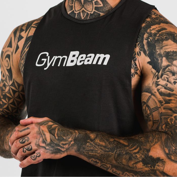 Потник Cut Off е с модерен дизайн, произведен от 65% памук и 35% полиестер. Този елегантен модерен топ е черен с бял надпис "GymBeam" на гърдите и дълбоко изрязани ръкави. Той е идеален за тренировки, но изглежда толкова добре, че бихте го носили и при други ситуации.