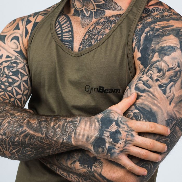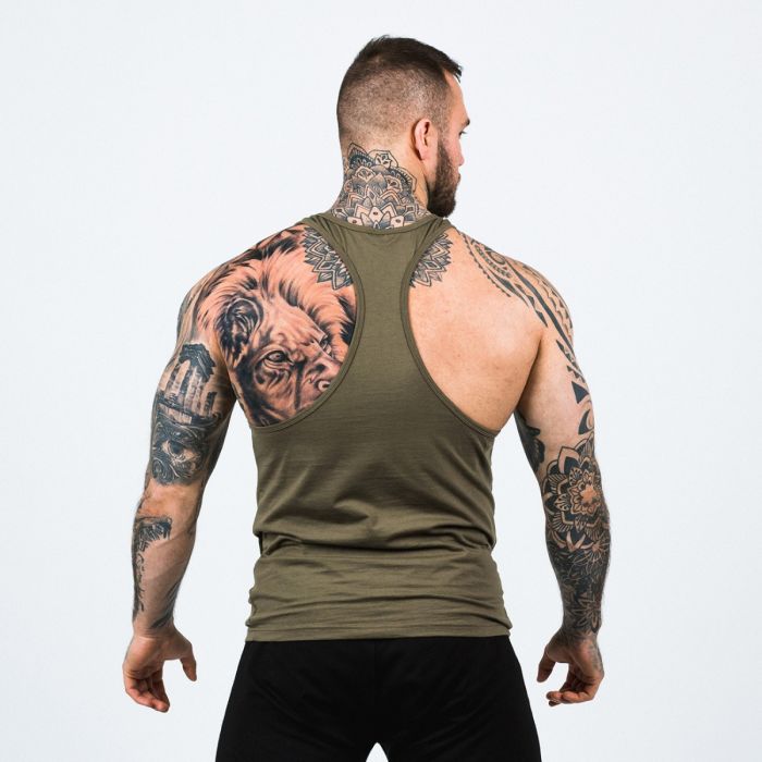 Потникът Stringer Tank Top Olive Green - мъжки потник за тренировки, който подчертава релефа на вашите мускули