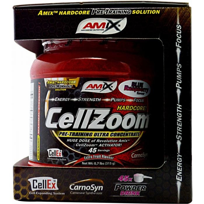 CellZoom® е фантастичен високо концентриран стимулант преди тренировка със съдържание на силни синергично действащи съставки. Предназначен е най-вече за спортисти и бодибилдъри, които искат да изстрелят своето представяне няколко нива по-високо. Подпомага увеличаването на експлозивната сила, експлозивността, увеличаване на обема на тренировъчните сесии, напомпване на мускулите и по-висока устойчивост срещу умора при повишено физическо натоварване. Тзи типичен силен стимулант, който влияе върху нервната система, перфектно ви мотивира за физическо натоварване и подпомага концентрацията. Всички тези ефекти ще ви помогнат за по-добър растеж на мускулите.