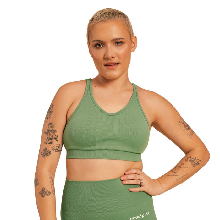 В допълнение към перфектния материал на сутиена, ще оцените и неговата кройка. Той е ушит така, че перфектно да обгръща извивките ви, за да можете да се съсредоточите върху тренировката си. Трябва да споменем и неговия непреходен външен вид. Той впечатлява с модерната оребрена шарка и стилнен надпис BeastPink на гърба. Това го прави лесен за комбиниране с други елементи от гардероба ви за свободното време.
