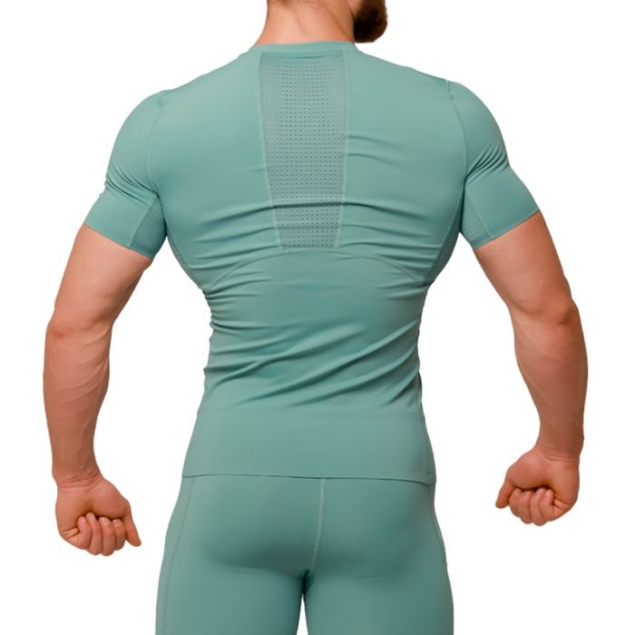 Mid Compression Tениската с къс ръкав е функционална дреха, която ще се хареса на най-взискателните любители и професионални спортисти. Благодарение на дизайна си тя ще осигури средна компресия, като ще помогне за намаляване на мускулния шок и вибрациите, причинени от движението. Затова е идеална за всеки, който иска да се възползва максимално от предимствата на компресионното облекло. Това е така, защото то може да помогне за по-ефективното кръвообращение. Това гарантира, че повече хранителни вещества достигат до мускулите по време на спортна дейност, което има положителен ефект върху самото представяне. Освен това по този начин се спомага и за ускоряване на „метаболитното почистване“ под формата на отстраняване на млечната киселина (лактат) и други отпадни продукти на енергийния метаболизъм, които се натрупват в мускулите по време на тренировка. В резултат на това то ще подпомогне и последващото възстановяване и може да окаже ефект и върху намаляването на мускулната треска след тренировка.