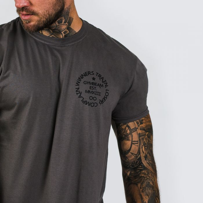 Тениската Winners Train Charcoal е тениска за фитнес от 100 % памук, която има по-свободна кройка и затова е подходяща за всяка фигура. Модерният ѝ дизайн се допълва от надписа "Winners train, losers complain", който ще ви мотивира да тренирате редовно, за да успеете да постигнете фитнес целите си.
