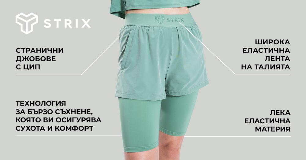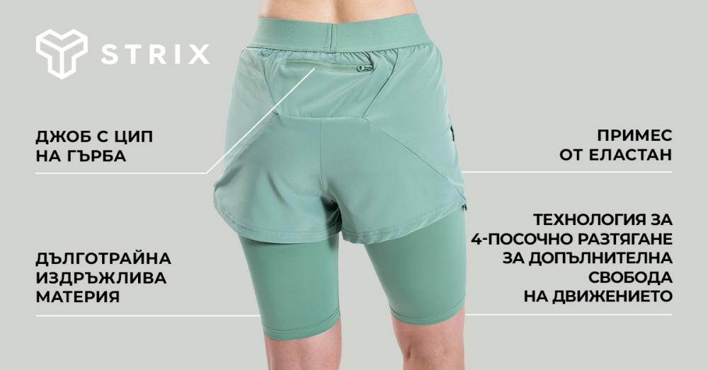 Дамски шорти ULTRA 2in1 Agave - STRIX | GymBeam.bg Skip to main content